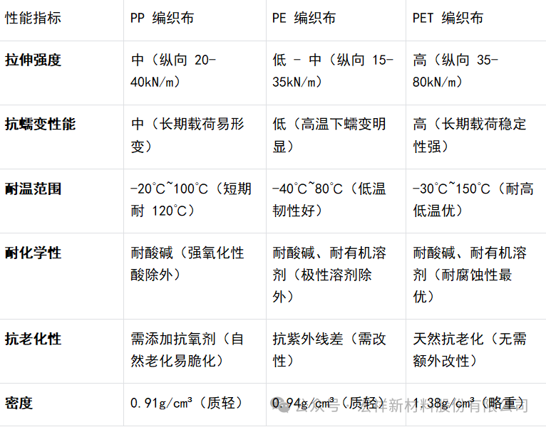 在土工工程领域,PP(聚丙烯)、PE(聚乙烯)、PET(聚对苯二甲酸乙二醇酯)编织布凭借优异的力学性能与耐环境性,成为加筋、隔离及复合材料体系中的核心材料。三者虽同属高分子编织品类,但分子结构差异带来的性能分化,使其在实际应用中呈现显著的场景适配性差异。以下从材料本质出发,结合三大核心应用场景,解析其选型逻辑与应用边界。
